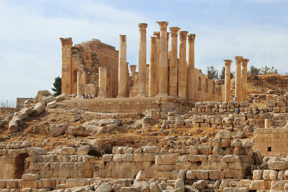 Desayuno. Salida hacia la frontera terrestre entre Israel y Jordania. Llegada a Reino Hashemita de Jordania. Asistencia y trámites de visado, Salida hacia Jerash, una de las ciudades más completas y mejor conservadas del Imperio Romano conocida como Pompeii del este, lo cual indica el gran ejemplo de la urbanización romana. Un recorrido por el tiempo a través de sus calles, teatros, templos y plazas entre los que destaca la gran columnata, el arco del triunfo, la plaza ovalada y los templos de Zeus y Artemisa. Salida hacia Amman, Visita de la ciudad, conocida antiguamente como Filadelfia: tour del centro de la ciudad con su Teatro Romano, Ciudadela, mercados tradicionales (souqs), iglesias y mezquitas, como la Mezquita Azul del Rey Abdullah cerca del Parlamento. (La entrada al Teatro Romano, la Ciudadela y la Mezquita Azul del Rey Abdullah no está incluida). Luego diríjase a la nueva ciudad moderna con sus barrios residenciales. Cena y alojamiento.