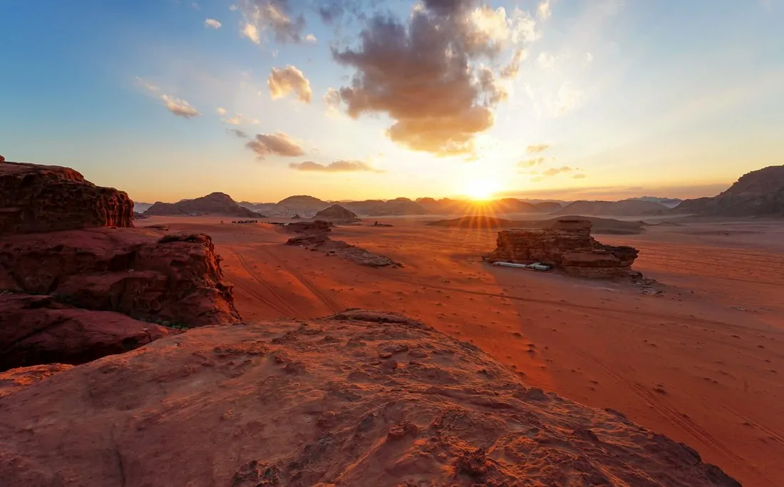 Desayuno en el hotel. Salida hacia el desierto de Wadi Rum, uno de los escenarios de la película Lawrence de Arabia, “The Martian” por Matt Damon y “La Guerra de las Galaxias: El Ascenso de Skywalker”; uno de los entornos más espectaculares de Oriente Medio. Se trata de un desierto de arena roja, sobre el cual se alzan montañas de granito y picos de colores dorados y rojizos. Recorrido (tour clásico) en vehículo 4×4 por los imponentes paisajes de aproximadamente 2 horas con beduino local. Regreso a Ammán. Cena y alojamiento.